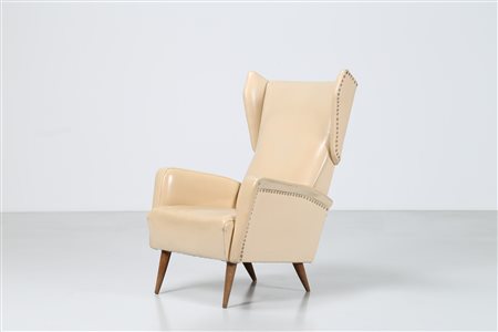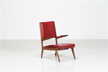 Lotto 84 GARDELLA IGNAZIO (1905 - 1999) Poltrona in noce e skai, anni 40. Pubblicazioni; Il mobile italiano degli anni 40 e 50, Irene De Guttry, M. Paola Maino, Laterza pag. 179, fig. 8. . -. Cm 57,00 x 83,00 x 66,00.