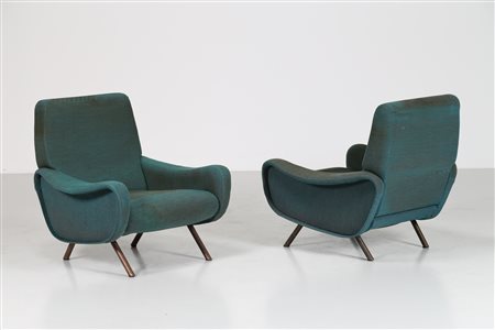 Lotto 87 ZANUSO MARCO (1916 - 2001) Coppia di poltrone con struttura in metallo, piedi in ottone e rivestimento in tessuto originale, mod. Lady, per Arflex, 1950. Medaglia d’oro alla IX triennale di Milano. Etichetta originale presente. Pubblicazioni; Domus num. 293 aprile 1954 pag. 76; G. Dor es, Marco Zanuso designer, Editalia, pag. 19, 1971; I. de Guttry, M. P. Maino, Il mobile italiano degli anni 50 e 60, pag. 282, Laterza, 1962; G. Gramigna, Repertorio 1950- 2000, p. 25, Allemandi, 2003. . -. Cm 70,00 x 80,00 x 80,00.