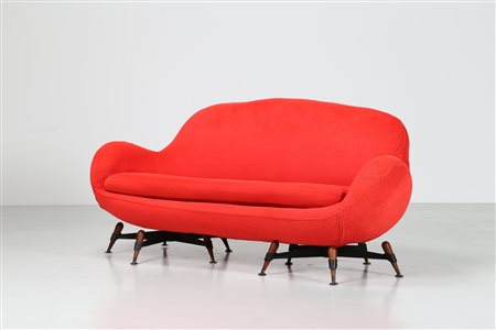 Lotto 88 PARISI ICO (1916 - 1996) Divano curvo in legno e tessuto, per Ariberto Colombo Cantù anni 50. Disponibile certificato di autenticità, Archivio del Design di Ico Parisi. Pubblicazioni; Ico Parisi Design, Catalogo Ragionato, Silvana Editoriale a cura di Roberta Lietti, pag. 250 - 251, 1951.4C. . -. Cm 280,00 x 85,00 x 110,00.