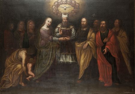 PITTORE ANONIMO DEL '600 "Lo sposalizio della Vergine" 97x136 olio su tela (piccoli restauri)
