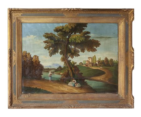 • ZUCCHELLO PIERRE XIX - XX secolo "Paesaggio con figure" 70x100 olio su tela...