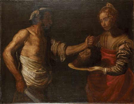 • PITTORE ANONIMO DEL '600 "Salomé e la testa del Battista" 98x125 olio su tela...