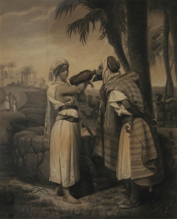 AUTORE NON IDENTIFICATO "Rebecca e Eliezer" 1849 51x41 disegno a carboncino su carta Firma illeggibile in basso a destra Opera datata in basso a destra