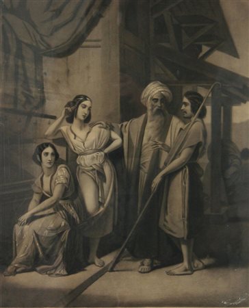 • AUTORE NON IDENTIFICATO "Rebecca e Eliezer" 1849 51x41 disegno a carboncino...