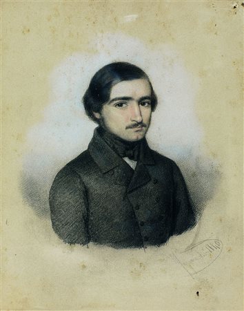 PITTORE NON IDENTIFICATO "Figura maschile" 1840 23x18,5 matite colorate su carta Firma non decifrata e data in basso a destra Provenienza: eredi famiglia Turletti
