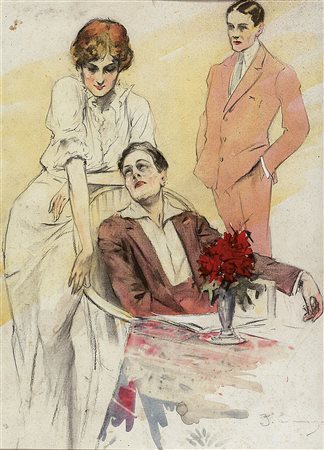OMEGNA FILIPPO Torino 1881 - 1948 Montaldo (CN) "Al caffé" 38,5x27,5 acquerello su carta Opera firmata in basso a destra