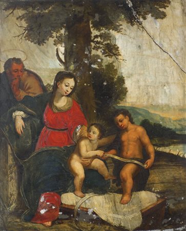 • PITTORE ANONIMO "Sacra Famiglia e San Giovannino" 39x32,5 olio su marmo