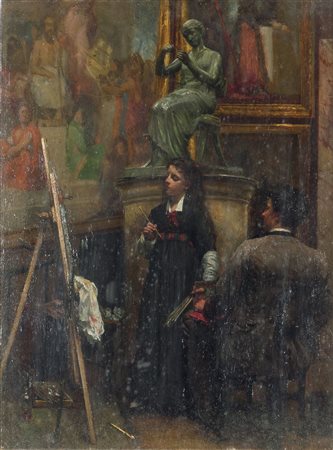 • NANI NAPOLEONE Venezia 1839 - Roma 1899 "Lezioni di pittura" 35x26 olio su...