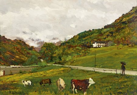 COLMO GIOVANNI Torino 1867 - 1947 "Estate sui monti" 1924 20x30 olio su cartone Opera firmata in basso a destra Già galleria La Finestrella, Canelli (etichetta al retro)