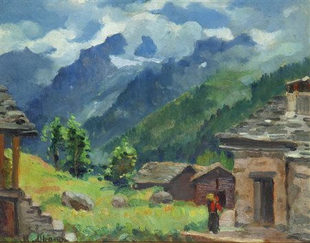 ALBANO MARIO Torino 1896 - 1968 "Macugnaga" 1935 33x26 olio su cartone Opera firmata in basso a sinistra