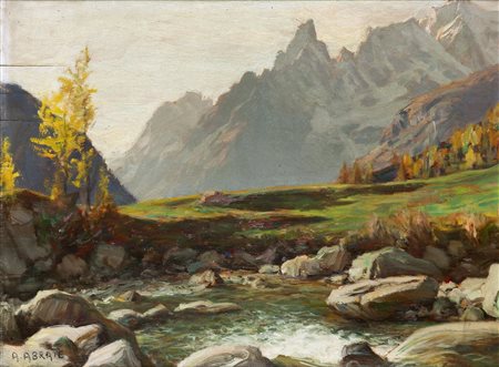 ABRATE ANGELO Torino 1900 - 1985 Sallanches "Autunno (La Dora a Entrèves)" 33x43 olio su tavoletta Opera firmata in basso a sinistra Fenditure della tavola lungo il margine sinistro