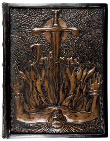 6 tomi in 3 volumi in-folio (mm 340x260). Pagine 158, [4]; [10], 173-326, [4] con 34 tavole a colori fuori testo numerate 1-33. 162, [6]; [8], 173-328, [2] con 33 tavole a colori fuori testo numerate 1-33. 163, [3]; [10], 173-320, [2] con 33 tavole a colori fuori testo numerate 1-33. Con nel complesso 100 tavole a colori di Dalì fuori testo, a fogli sciolti. Ciascuna parte con proprio frontespizio, frontespizi e titoli stampati a due colori, rispettivamente rosso per i due tomi dell'Inferno, viola per il Purgatorio e blu per il Paradiso. Ottima conservazione tranne che per un piccolo strappo senza perdite alla tavola XIX dell'Inferno. Esemplare n. 971, uno dei 2900 numerati su una tiratura complessiva di 3044 copie. Splendida legatura editoriale in pelle con piatti anteriori in bronzo decorato a sbalzo con tre diverse illustrazioni allegoriche, titoli impressi in oro ai dorsi a 5 nervi. Entro cofanetti in pelle, lisi e con difetti. (3)