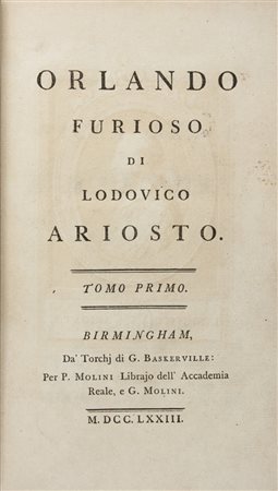 Celebre e magnifica edizione illustrata da superbe incisioni di Bartolozzi, de Ghendt, Launay, Longueil e altri da disegni di Cochin, Monnet, Cipriani, Eisen. Cfr. Agnelli-Ravegnani, 204-205: «Magnifica edizione sia per la bellezza della stampa, sia per le illustrazioni, che la fanno uno dei livres à figures meglio riusciti del XVIII secolo»; Brunet I, 438; Cohen-Ricci 95-97: «Très belle édition»; Gamba 62: «Se per bellezza di stampa e per merito d'intagli va riguardata questa edizione come una delle migliori produzioni della tipografia, è stata eziandio dal Morali trovata una delle migliori per bontà del testo»; Guidi, Orlando Furioso 111. -
