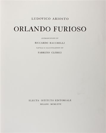 2 volumi in-folio (mm 418x330). Pagine XVIII, [2], 340, [8]; [8], con 158 tavole a colori numerate di Fabrizio Clerici. Testatine e finalini in rosso. In cartella editoriale di carta con custodia in pelle rossa. Ottime condizioni. (2) -