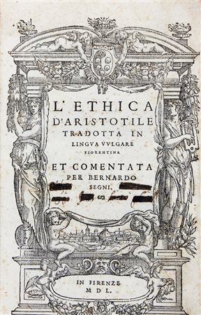 Non comune prima edizione del volgarizzamento del Segni dell'Ethica Nicomachea di Aristotele. Brunet I, 467: «On ne trouve pas facilement cette traduction» citata nel Vocabolario della Crusca; Gamba 87 «Originale e leggiadra ediz.»; Moreni, Ann. Torr. 104-105: «Quattro sono i diversi caratteri usati in questa edizione, e tutti stupendissimi, talchè fanno tra loro un'ottima armonia»; Paitoni I, 121. -