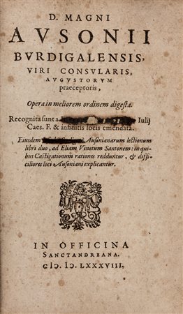 Lotto 1080 Ausonius Decimus Magnus, Opera in meliorem ordinem digesta. Recognita sunt a [Iosepho Scaligero] Iulij Caes. f. & infinitis locis emendata....