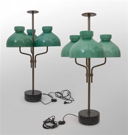 Una coppia di lampade da tavolo "Arenzano tre fiamme" (LTA3B) per AZUCENA, 1963.