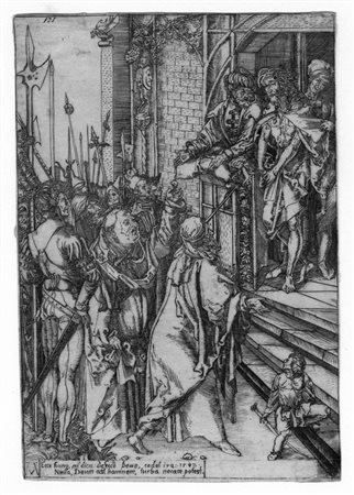 Lotto 21 Monogrammista AV ECCE HOMO. 1592 Nagler I, 1391. Bulino. mm 190x130. Da un soggetto di Albrecht Du¨rer. Momogrammato e datato sulla lastra. I stato su 2 prima dell’apposizione del monogramma di Du¨rer e del cambio della data. Bellissima impressione stampata su carta vergellata con filigrana “Aquila bicipite”. Al verso timbro del Gabinetto Stampe dell’Albertina di Vienna (Lugt, 5e) e relativo timbro doublette (Lugt, 5h). Sottile margine oltre la linea di inquadramento con l’impronta della lastra visibile a tratti, residui al verso di vecchio montaggio Bellissima impressione stampata su carta vergellata con ligrana "Aquila bicipite". Al verso timbro del Gabinetto Stampe dell’Albertina di Vienna (Lugt, 5e) e relativo timbro doublette (Lugt, 5h). Sottile margine oltre la linea di inquadramento con l’impronta della lastra visibile a tratti, residui al verso di vecchio montaggio
