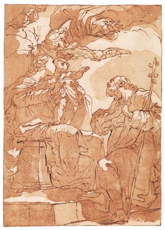 Lotto 22 Gandolfi Gaetano SACRA FAMIGLIA Acquaforte e acquatinta. mm 198x140. De Vesme, 4. Gozzi, 12. Bagni, 514. Da un disegno di Ubaldo Gandolfi (Bagni, 513). Raro esemplare nel I stato su 2 prima del monogramma dell’artista, non censito da De Vesme. Ottima prova stampata in arancio con segno nitido e pieno. Rifilata poco oltre la linea marginale, controfondata. Ottima prova stampata in arancio con segno nitido e pieno. Rifilata poco oltre la linea marginale, controfondata.