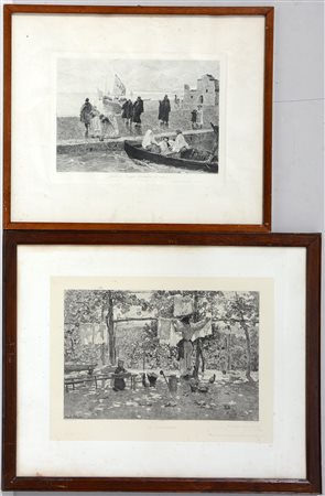 • Due acqueforti raffiguranti dipinti di "Bozzaro" e "Mosè Bianchi", edite...