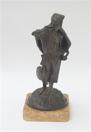 Dall'opera di Achille D'Orsi, "Il pescatoriello" scultura in bronzo su basamento in marmo giallo (h totale cm 35) (lievi difetti e mancanze)
