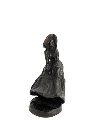 • Ignoto "Ragazza con cappello" scultura in bronzo (h cm 27) firmata Calis...