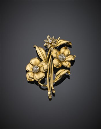 Yellow gold cowslip and field flower posy brooch accented with rose cut and round diamonds, g 25.86, length cm 6.50, width cm 4.50 circa. -