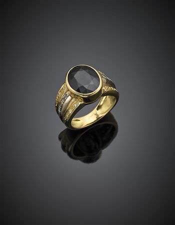 Oval ct. 8.50 circa sapphire diamond accented yellow gold ring, g 14.13 size 17/57. (losses) -