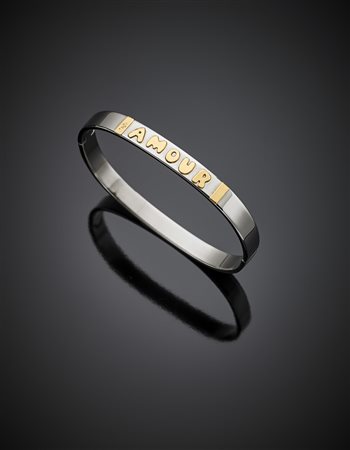 Steel and yellow gold bangle with the word "Amour", g 20.93, diam. cm 6.5. Marked 750 FI. -