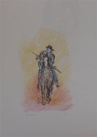Lotto 1 Antonio Bueno, Litografia su carta - prova d'autore. Dimensioni: 70cm x50cm. Certificazione: Firmato fronte opera