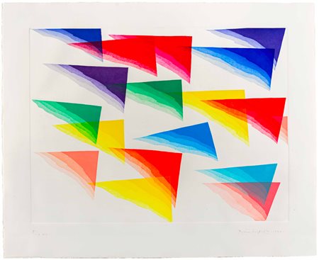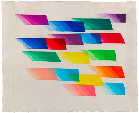 Lotto 1 PIERO DORAZIO(1927 - 2005)Color fax1990Acquatinta a colori su carta, es. 5/9 h.c.59 x 78,5 cm (lastra)77,5 x 95 cm (foglio)Firmata e datata a matita in basso a destra, numerata in basso a sinistraPROVENIENZA:Collezione privata, Milano