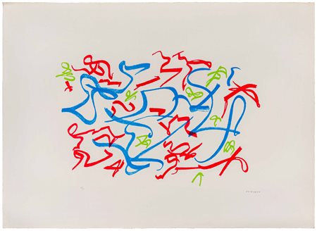 Lotto 21 GIUSEPPE UNCINI(1929 - 2008)Senza titoloLitografia su cartoncino, es. p.a.70 x 100 cmFirmata a matita in basso a destra, numerata in basso a sinistraPROVENIENZA:Collezione privata, Pavia