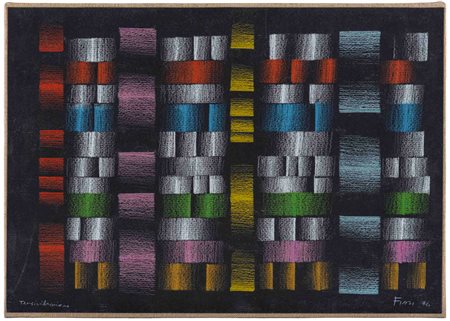 Lotto 20 ENNIO FINZI(1931)Tensivibrazione1974Pastello su cartoncino nero applicato su tela36 x 51 cmFirmato e datato in basso a destra, titolato in basso a sinistraPROVENIENZA:Collezione privata, Vicenza