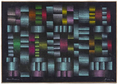 Lotto 19 ENNIO FINZI(1931)Tensivibrazione1974Pastello su cartoncino nero applicato su tela36 x 51 cmFirmato e datato in basso a destra, titolato in basso a sinistraPROVENIENZA:Collezione privata, Vicenza