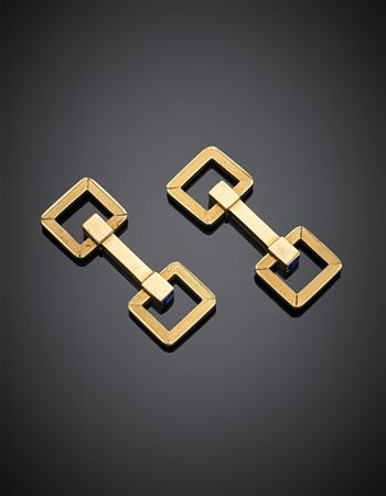 Lotto 700 Gemelli in oro giallo cesellato rifiniti con zaffiri carré, g 13,44, lungh. cm 2,40 circa. Marchio illeggibile e del Fascio.