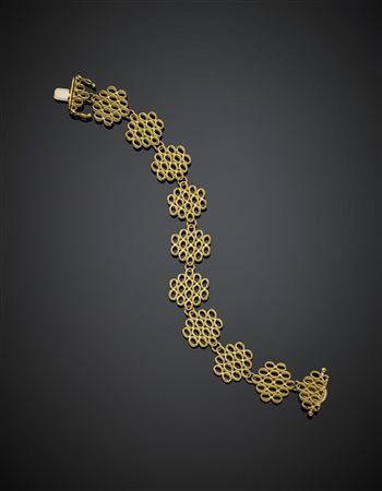 Lotto 703 Bracciale in oro giallo modulare con maglia zigrinata g 26,62, lungh. cm 18,30 circa. Marcato 272 VI.