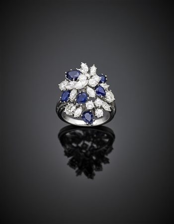 Round and marquise diamond pear sapphire white gold cluster ring, diamonds in all ct. 2 circa, g 8.40 size 15/55. -