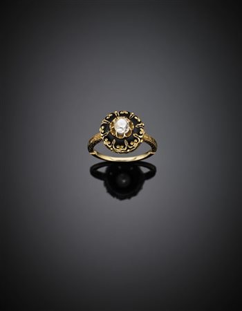 Cushion ct. 0.40 circa diamond black enamel yellow gold ring, g 3.88 size 10/50. In Spoggi Milano case (slight defects) -