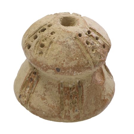 Oggetto rituale di forma cilindrica con una gola al centro, decorato con linee punti incisi con un foro alla sommità