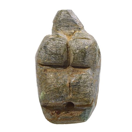 Pendente modellato a figura femminile nuda stilizzata steatopigia con testa conica e grandi seni