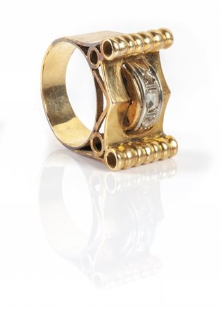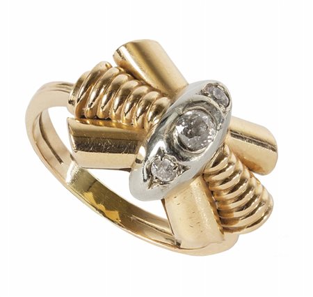 Lotto 2005 Anello in oro basso titolo epoca anni'40 con incastonate rosette di diamante