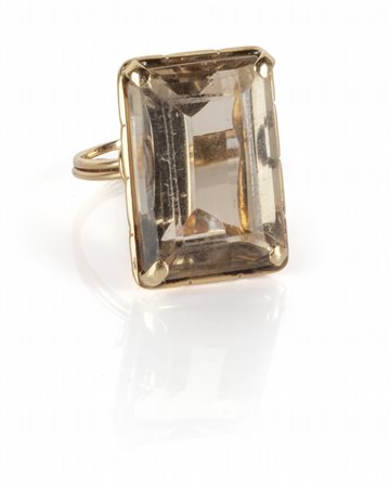 Lotto 2004 Anello in oro giallo epoca anni'50 con montato grande quarzo citrino