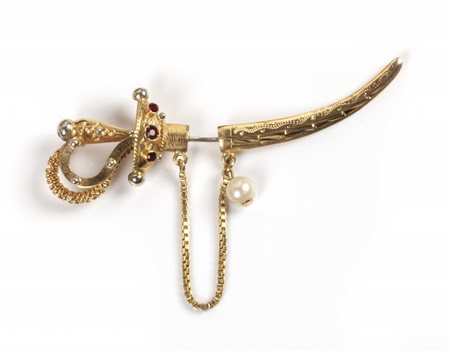Lotto 2006 Piccola spilla a forma di sciabola con piccoli rubini
