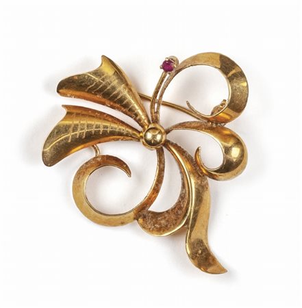 Lotto 2008 Lotto composto da tre spille in oro giallo e rosa epoca anni'50 con incastonati piccoli rubini