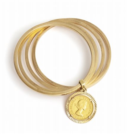 Lotto 2012 Bracciale in oro giallo formato da cinque anelli portante ciondolo sul quale è montata una sterlina