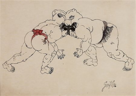 Lotto 13 GENTILINI FRANCO Lottatori, Tecnica mista su cartoncino