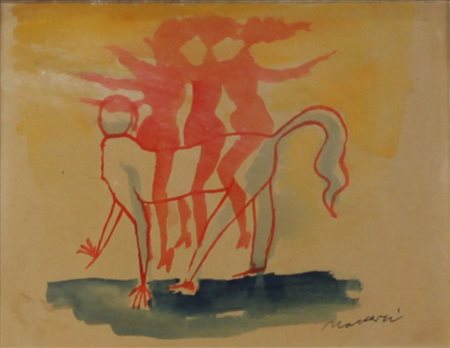 Lotto 23 MACCARI MINO A cavallo, Acquarello su carta