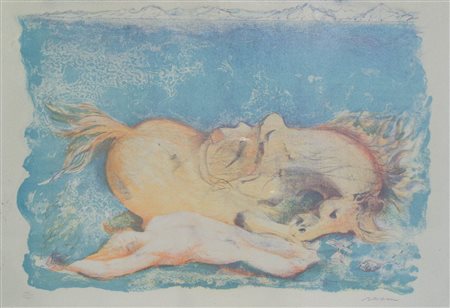 Lotto 16 Aligi Sassu Cavallo Litografia a col. su carta, 43,5 x 58 cm