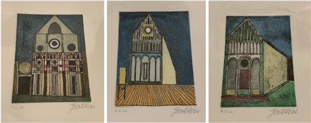 Lotto 21 Franco Gentilini Le cattedrali, 1951 3 acquaforti col., ciascuna 50 x 35 cm., dalla serie” l’attrait e le charme de la structure Harmonique”, edizione David Boucher Paris