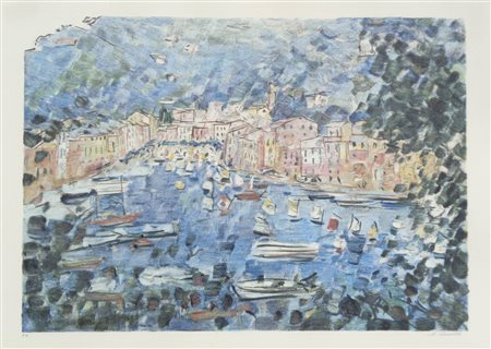 Lotto 22 Michele Cascella Porticciolo Litografia a col. su carta, 58,5 x 80 cm